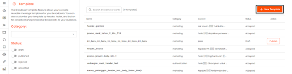 Sebelum melakukan broadcast, anda perlu mendaftarkan template terlebih dahulu. Berikut langkah-langkah untuk membuat template: