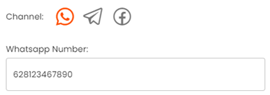 - Jika anda ingin menambahkan channel WhatsApp, maka klik icon WhatsApp dan masukkan nomor WhatsApp nya.