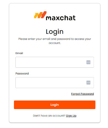 4. Jika informasi yang anda masukan benar, anda akan diarahkan ke halaman utama dari website Maxchat. Jika yang anda masukan salah, anda akan diminta untuk memasukkan Kembali email dan password yang benar.