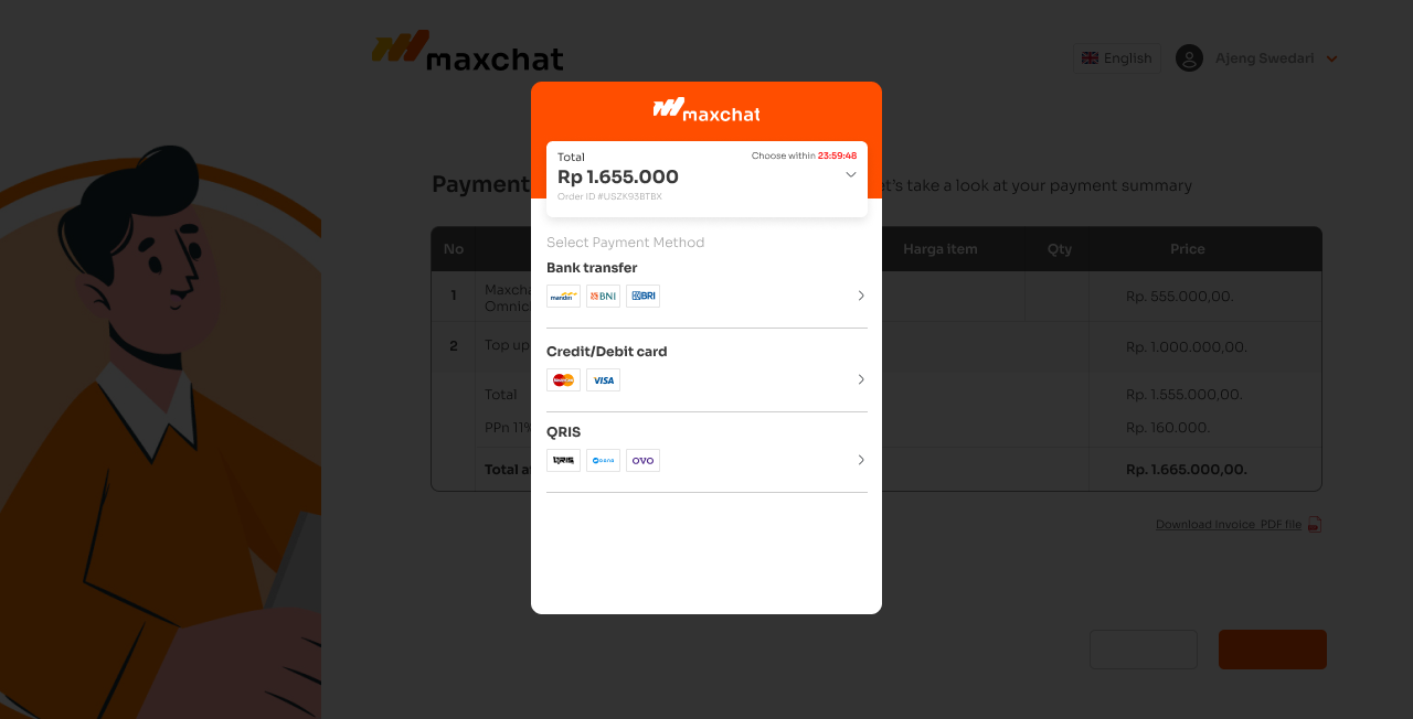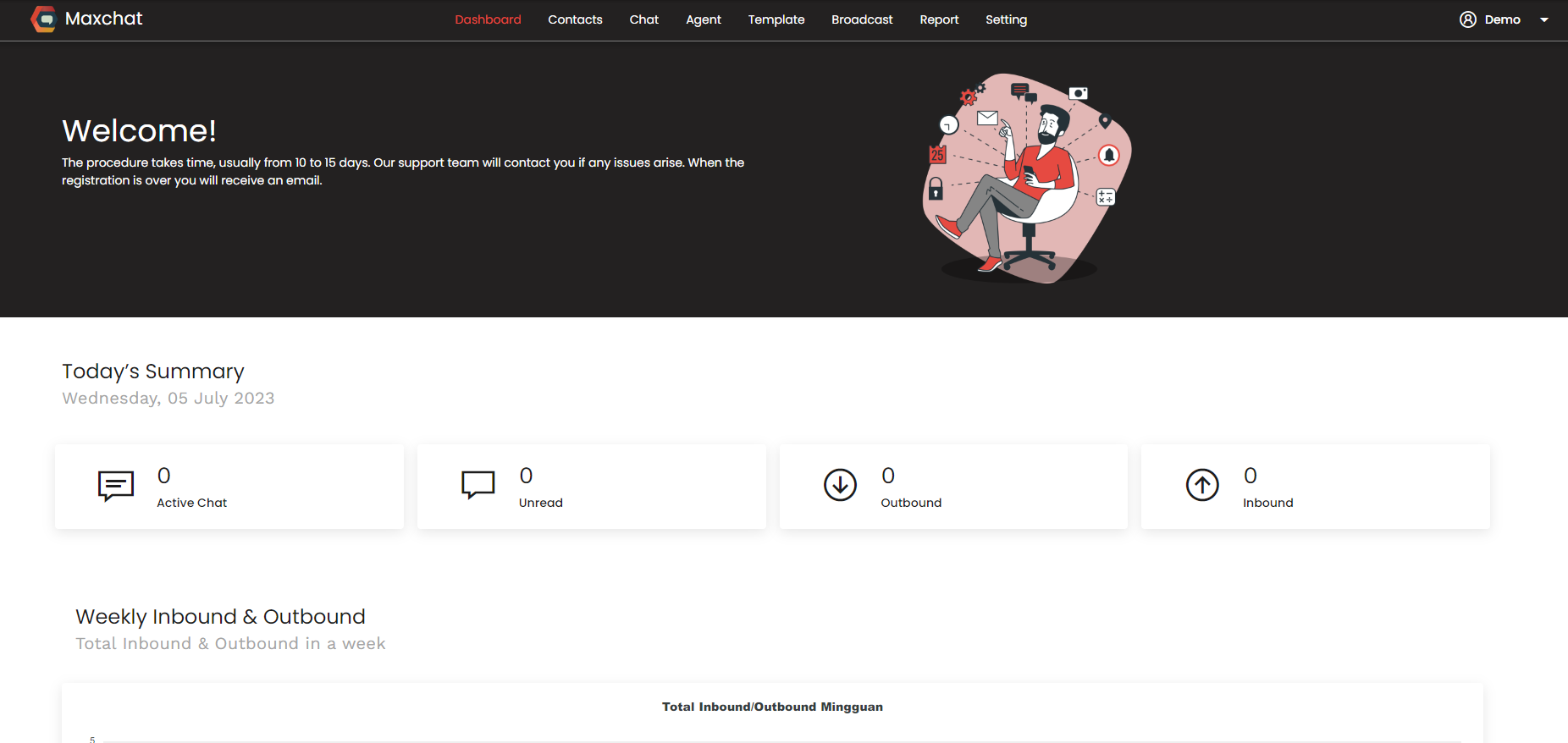 Pada versi 2.0 ini kami memberikan kemudahan onboard bagi bisnis dalam menggunakan platform omnichannel Maxchat, sehingga bisnis dapat dengan mudah mengaktifkan akun nya dan dapat fokus menangani pelanggannya dengan cepat.