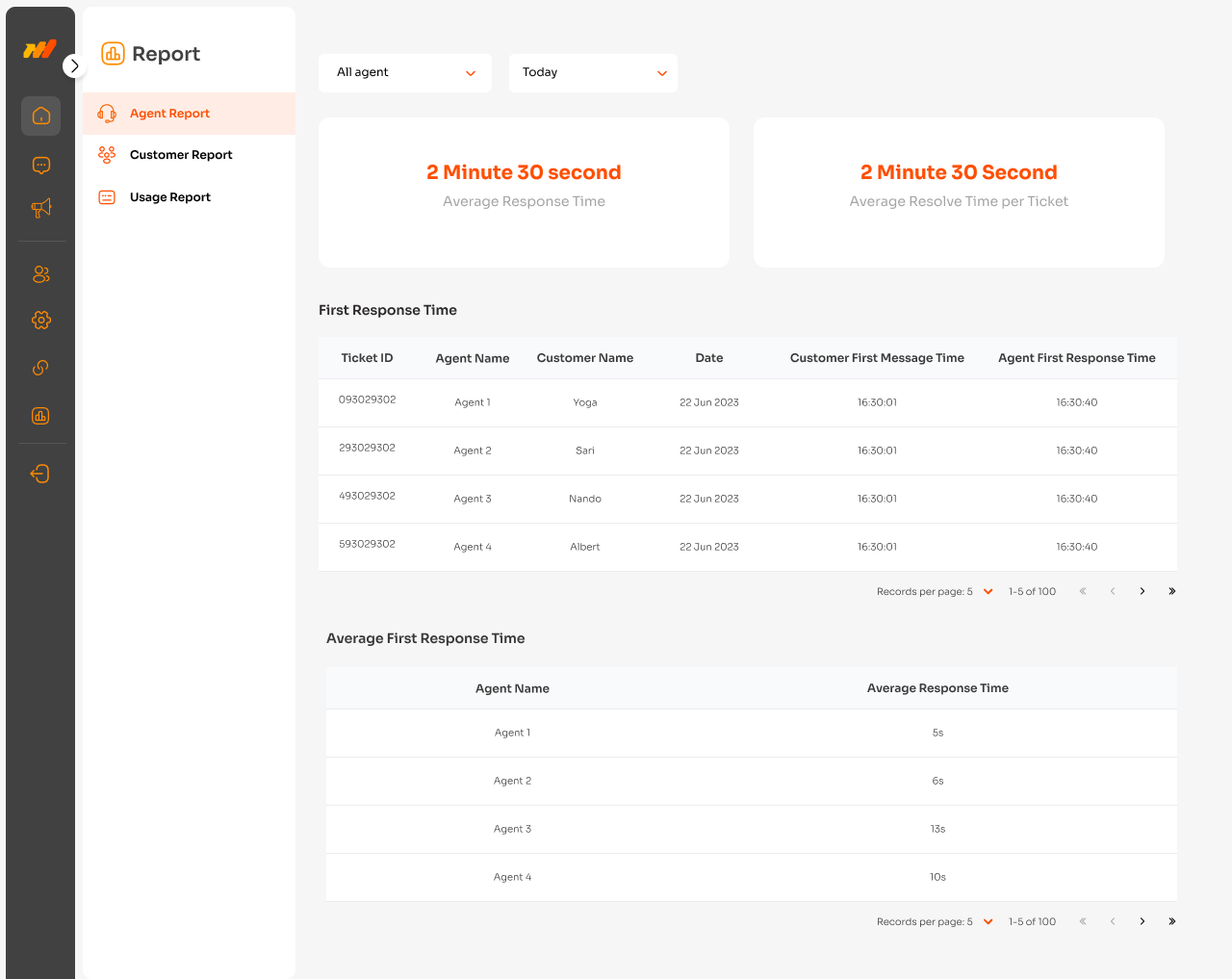 Pada versi 2.0 ini bisnis dapat mengetahui laporan dari masing-masing agen yang dimilikinya terkait dengan kecepatan membalas (First Response Time) maupun kecepatan menyelesaikan suatu issue dari pelanggannya (Resolve Time).