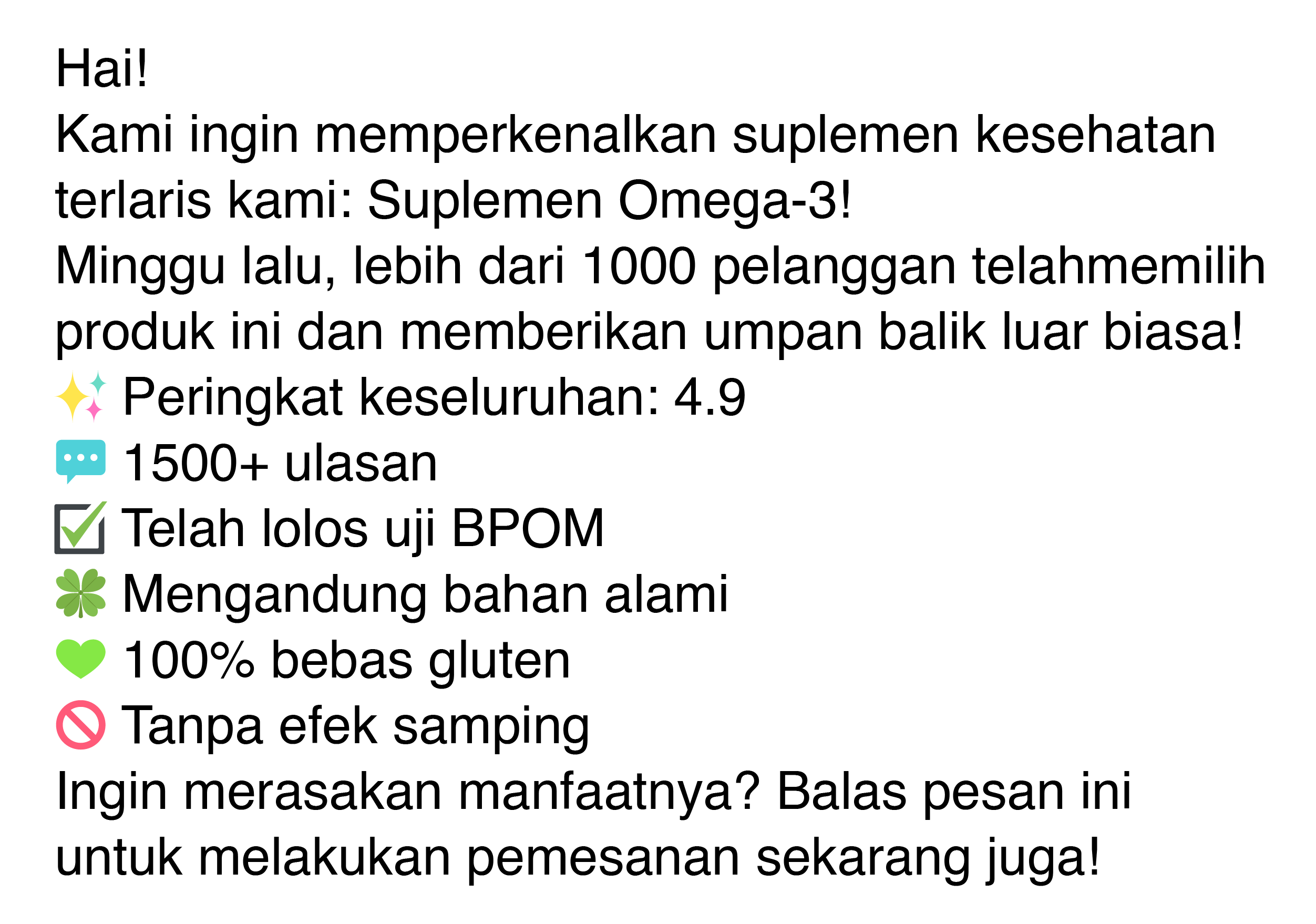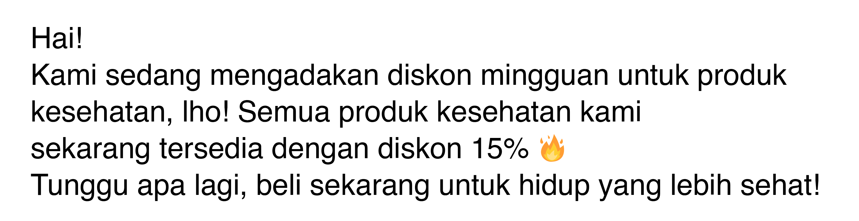 Namun meskipun banyak keunggulan, masih banyak brand kesehatan yang hanya menggunakan WhatsApp untuk notifikasi otomatis atau sekadar mengirimkan diskon. Kami yakin ada cara-cara lain yang lebih efektif.