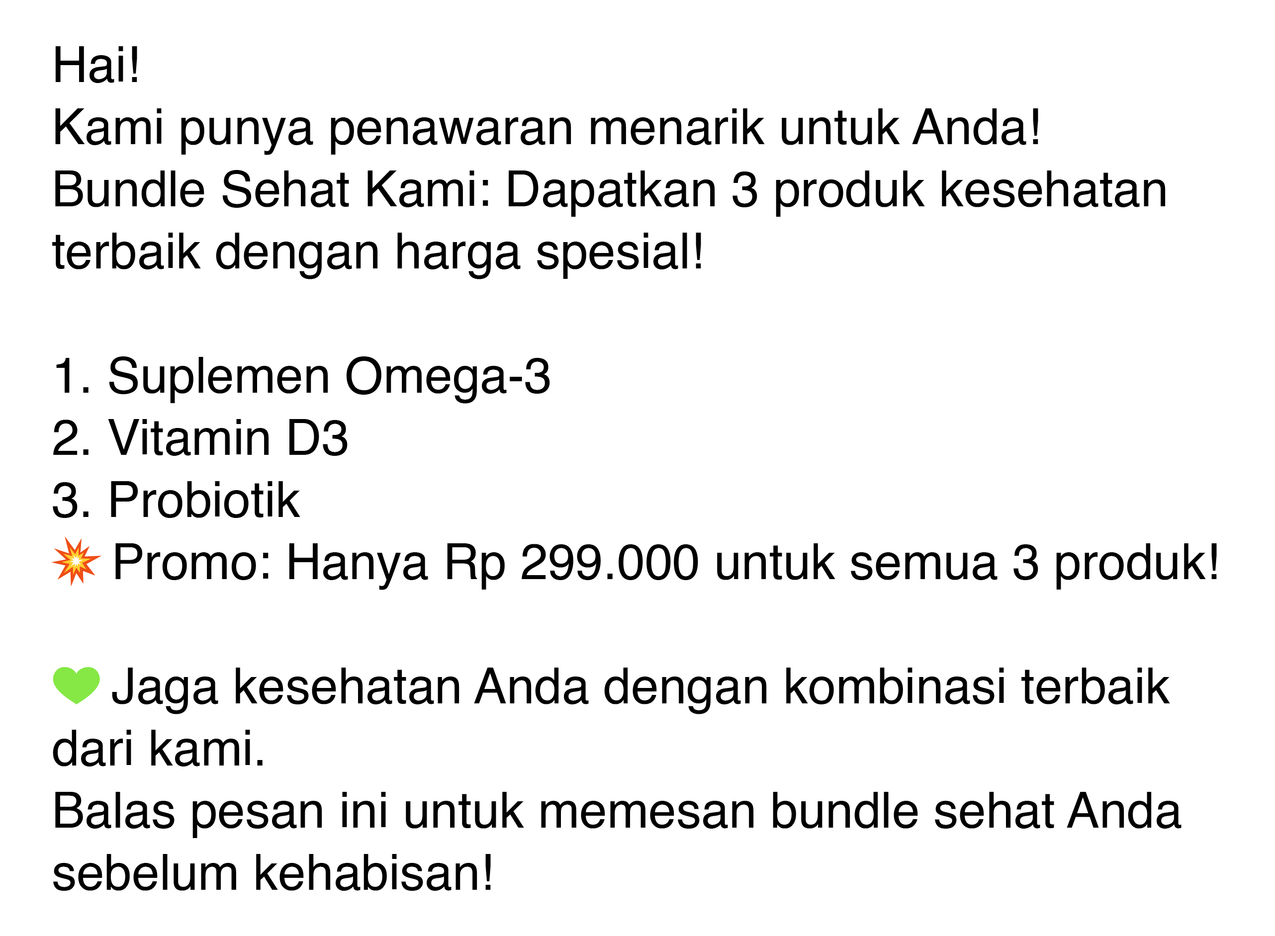 8.Tawarkan Produk & Bundle: Buat katalog bundling produk di WhatsApp agar konsumen lebih tertarik.