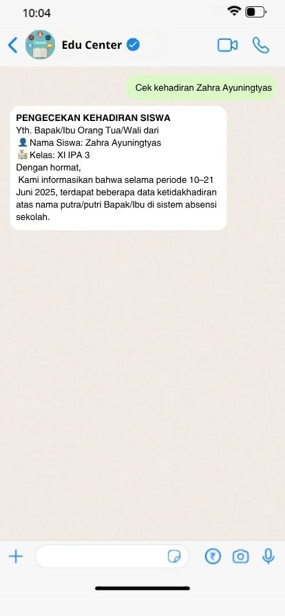 Orang tua bisa langsung mengecek kehadiran siswa melalui chatbot.