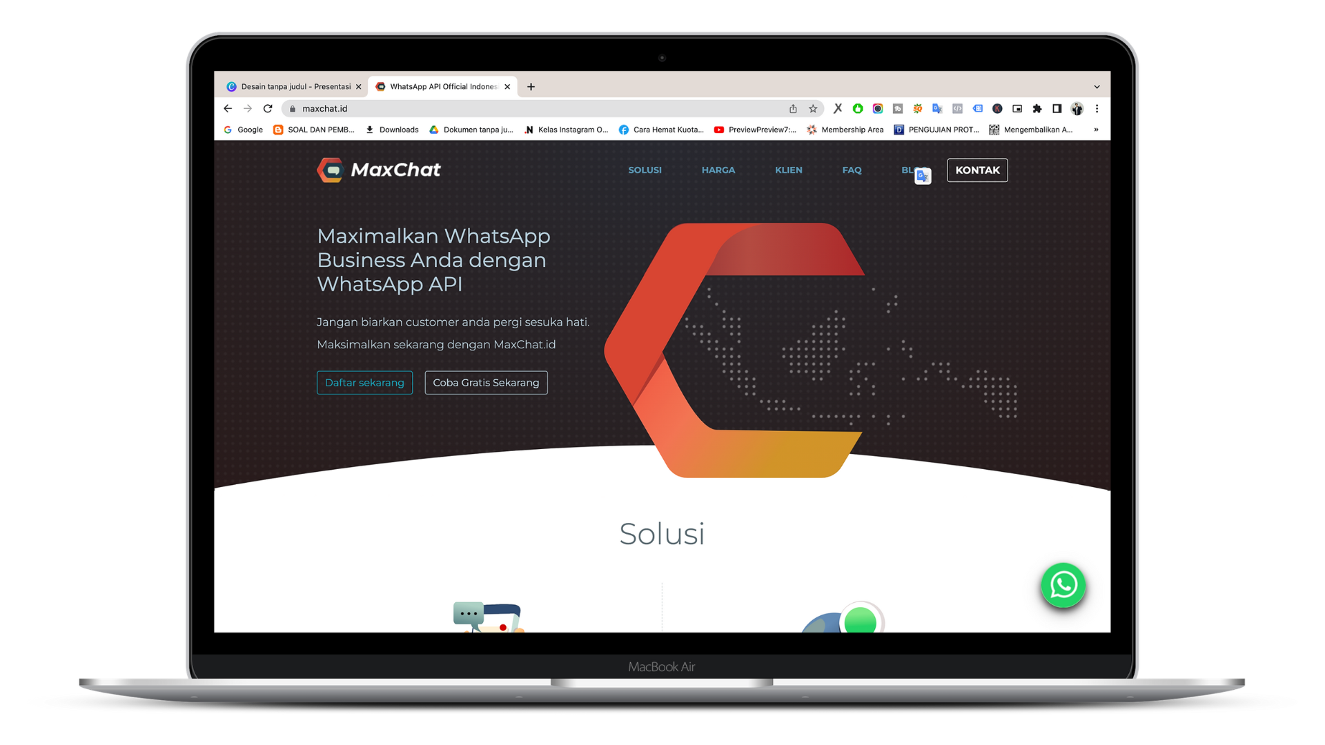 Sementara jika membuat WhatsApp auto respon dengan mendaftar WhatsApp Business API, Anda bisa menggunakan bantuan aplikasi pihak ketiga. Dengan aplikasi pihak ketiga, seperti maxchat.